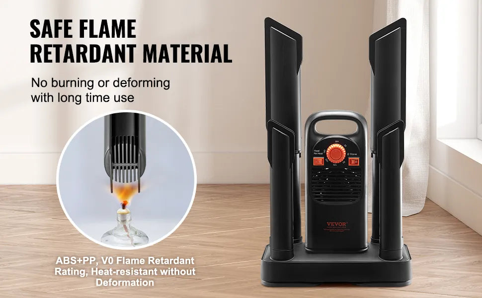 Crafted with premium ABS+PP and a V0 flame-retardant rating, our Boot & Shoe Dryer is built to withstand continuous heat without warping or melting.